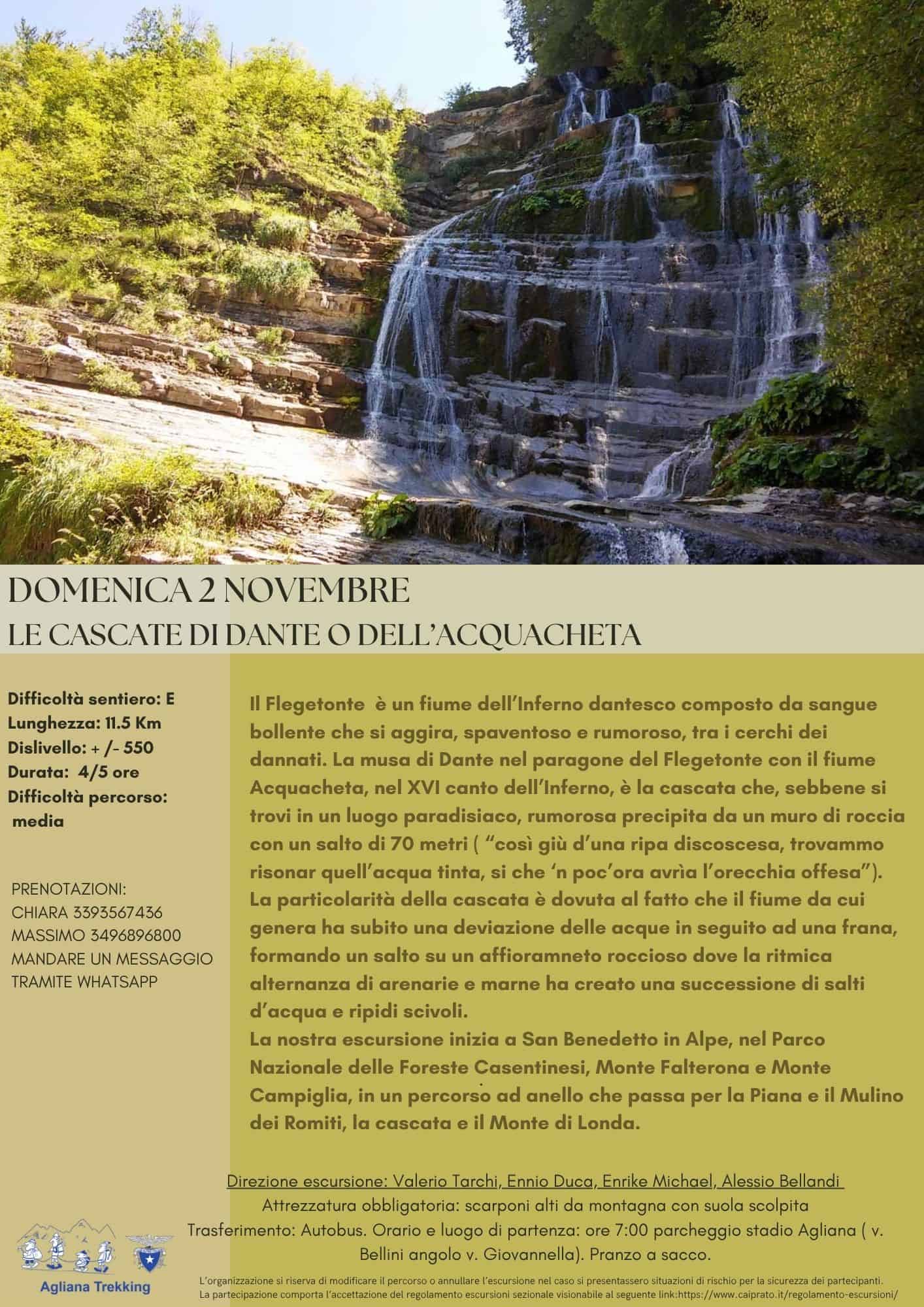 Attrezzatura obbligatoria: scarponi alti da montagna con suola scolpita. Trasferimento: Autobus. Orario e luogo di partenza: ore 7:00 parcheggio stadio Agliana ( v. Bellini angolo v. Giovannella). Pranzo a sacco.