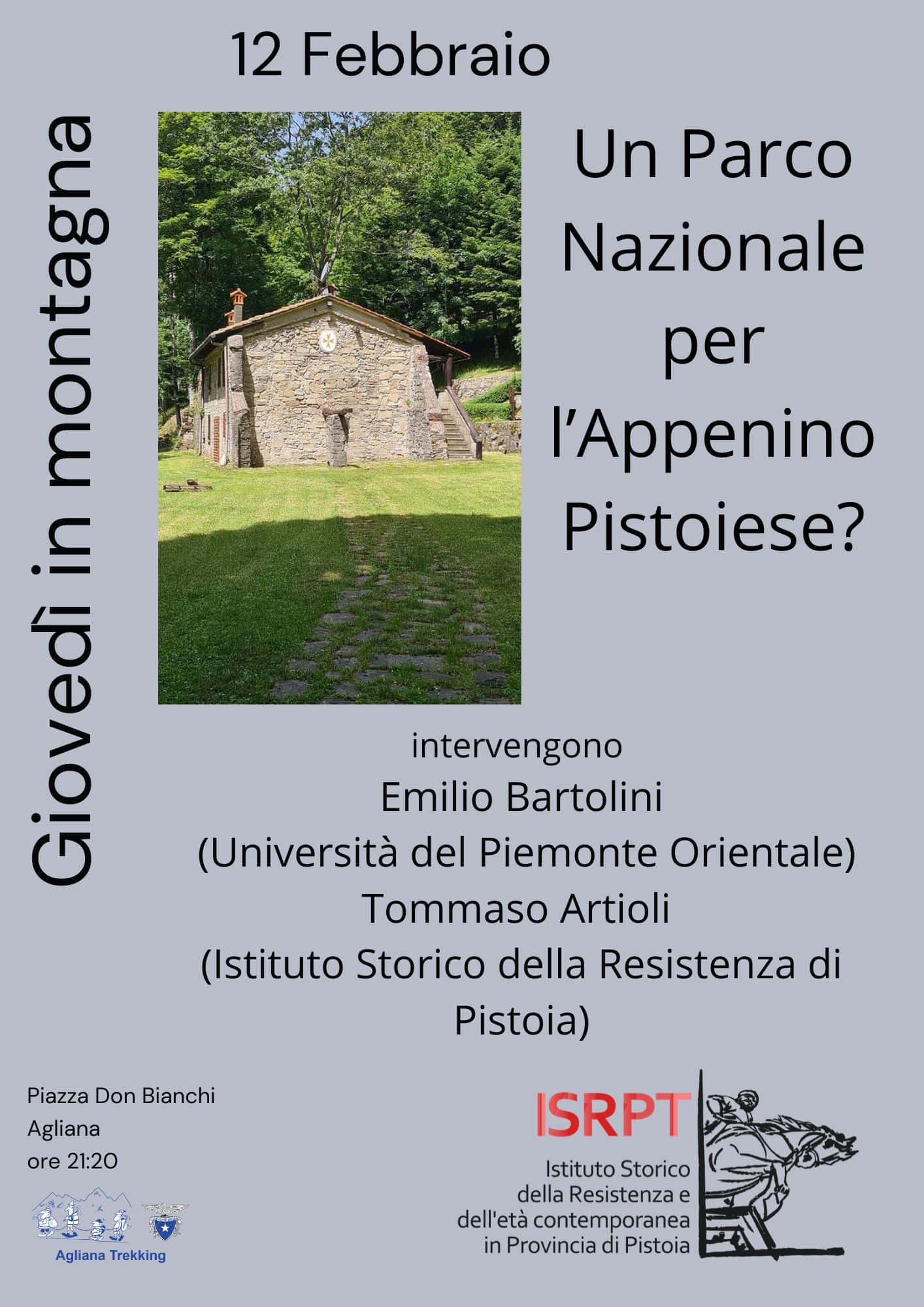 Prosegue la collaborazione tra l’Agliana trekking l’Istituto Storico della Resistenza di Pistoia La serata è intitolata Un parco nazionale per l’Appennino pistoiese. Intervengono Emilio Bartolini, docente dell’Università del Piemonte Orientale e Tommaso Artioli, direttore responsabile di Fare Storia, rivista dell’ISRPT. L’incontro si svolgerà alle ore 21.20 presso la nostra sede in Piazza Don Bianchi ad Agliana.