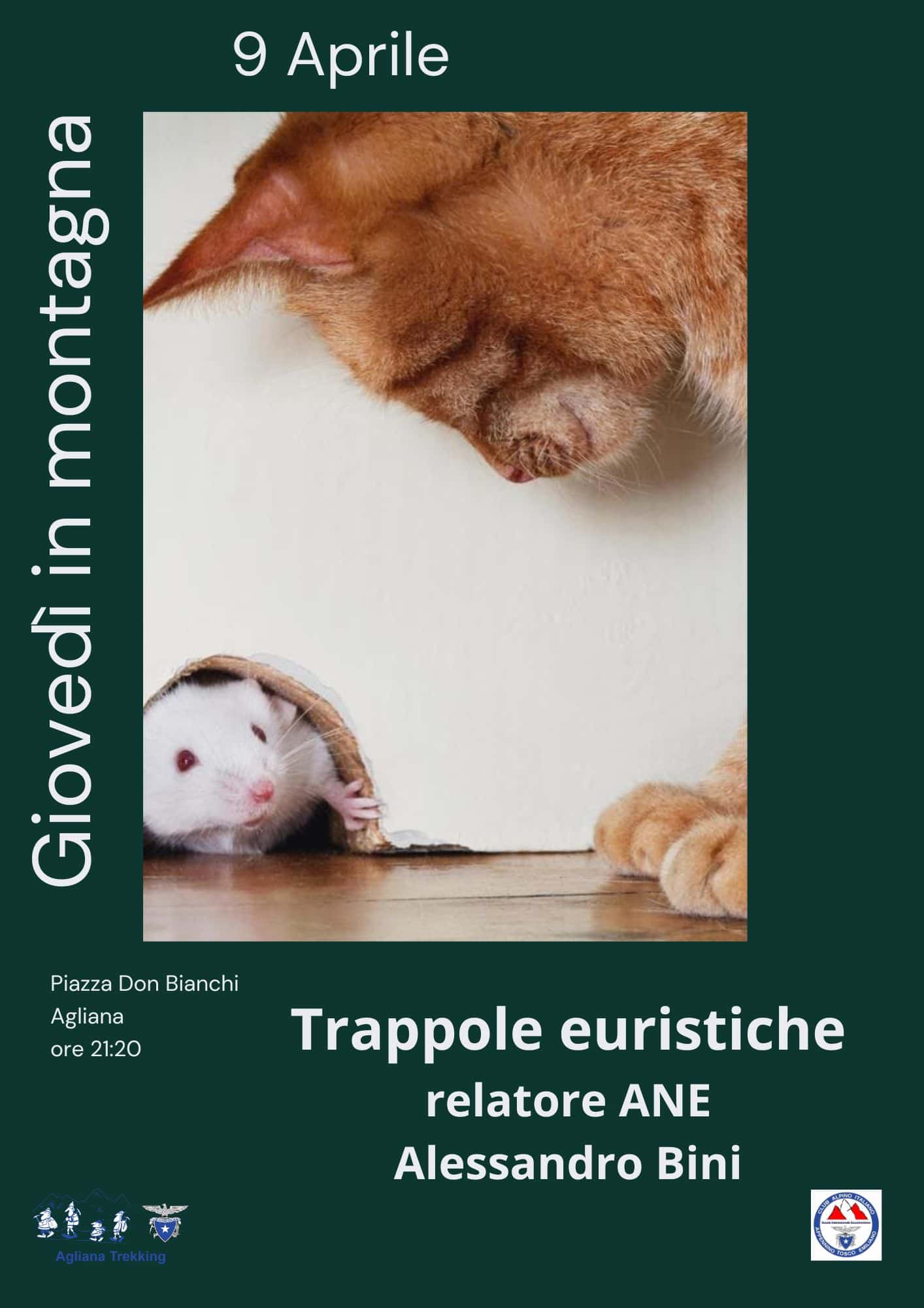 Giovedì 9 aprile parleremo degli errori di valutazione che si possono fare in montagna, le cosiddette trappole euristiche con Alessandro Bini, accompagnatore nazionale di escursionismo . L’incontro si svolgerà alle ore 21.20 presso la nostra sede in Piazza Don Bianchi ad Agliana.